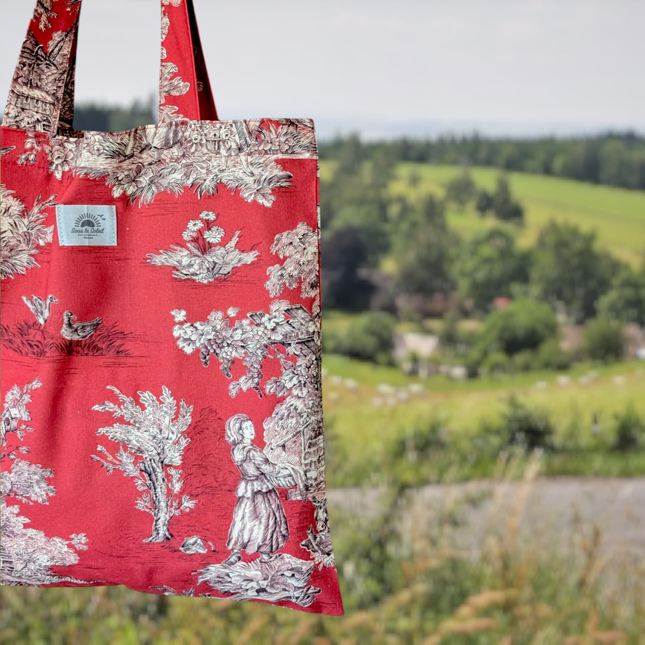 トートバッグ コットンバッグ サブバッグ エコバッグ Pastoral ルージュ / Toile de jouyトワル・ド・ジュイ * プロヴァンス雑貨 フランスL'Ensoleillade社