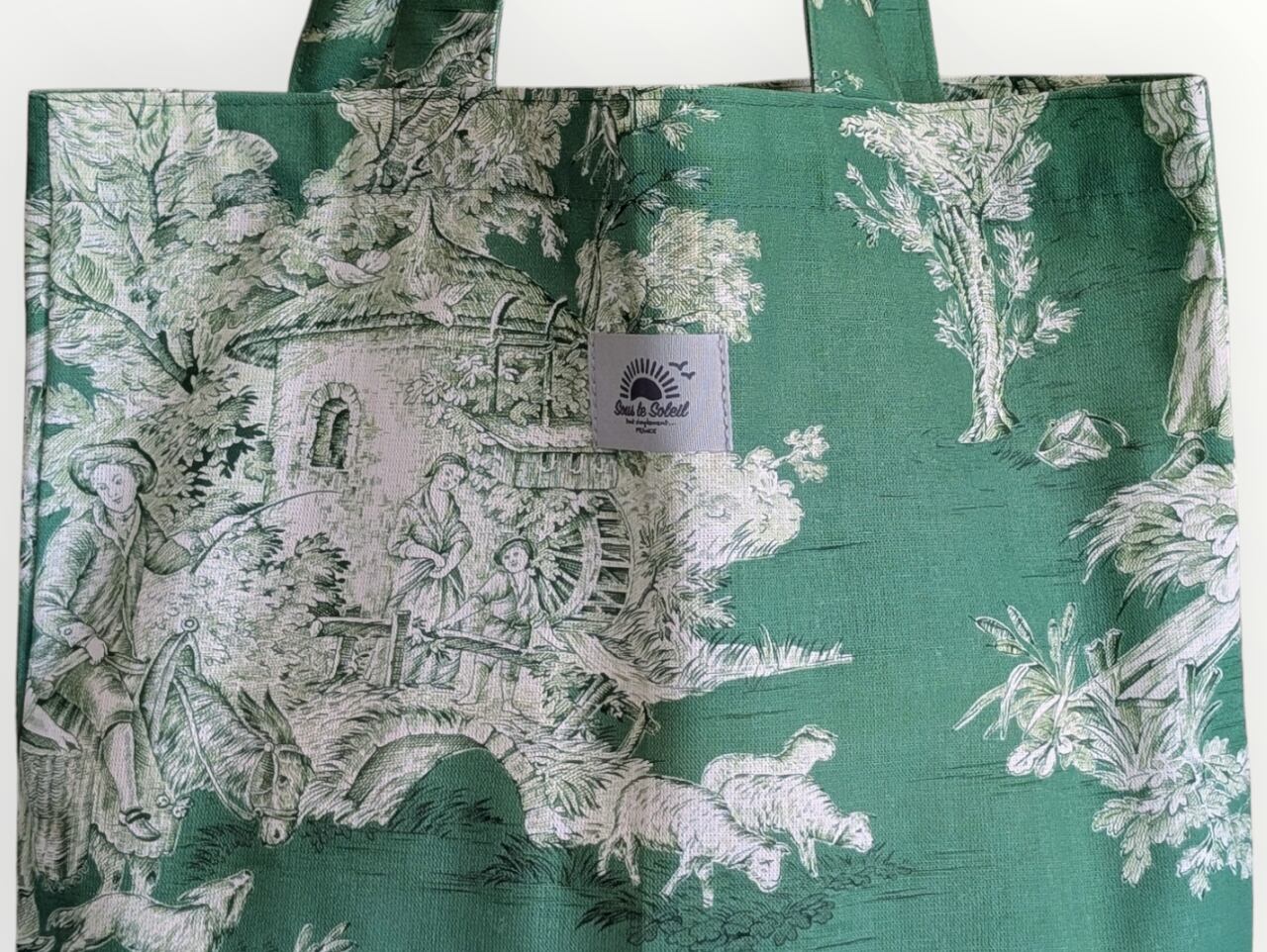 トートバッグ コットンバッグ サブバッグ エコバッグ Pastoral モスグリーン / Toile de jouyトワル・ド・ジュイ * プロヴァンス雑貨 フランスL'Ensoleillade社