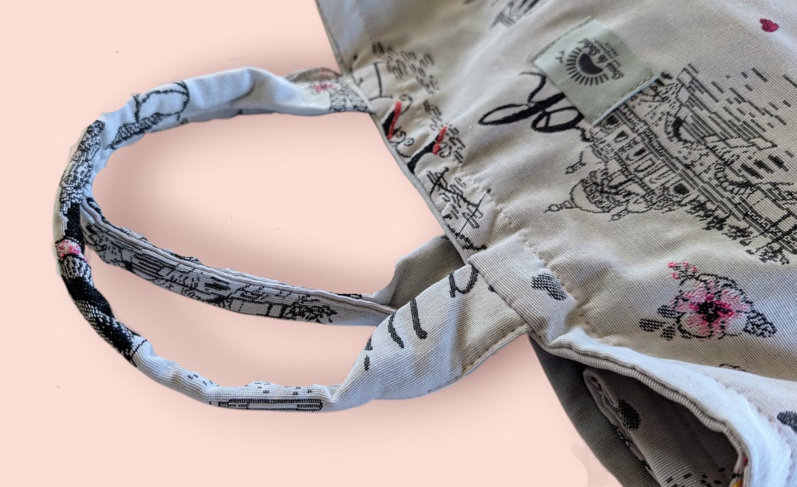 マチがたっぷりあって、持ち手がしっかり縫い込まれているので、普段のお買い物はもちろん、荷物の多いママのマザーズバッグとしてもお使いいただけます。