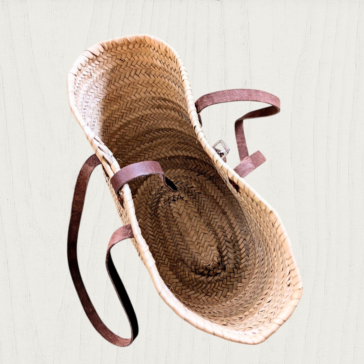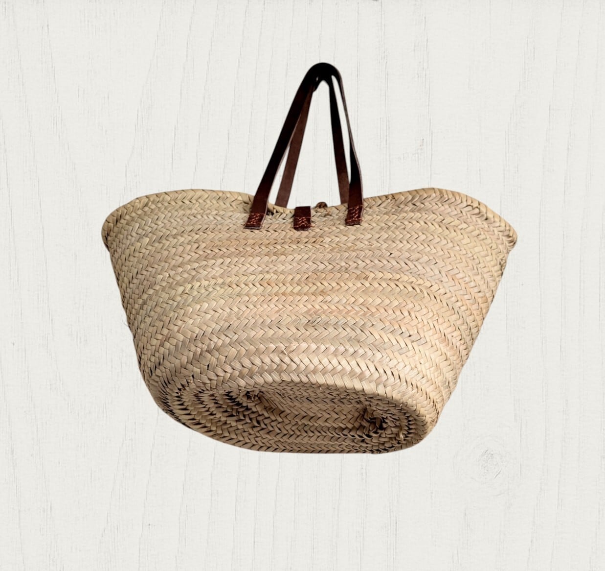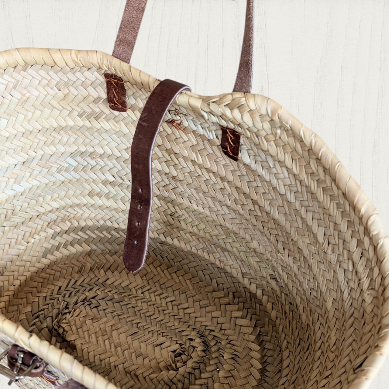 かなりしっかりと編み込まれ、縫い込まれていますが、機械ほど完璧でない部分もございます。中に入れるお荷物の量など、お取り扱いにはご注意ください。