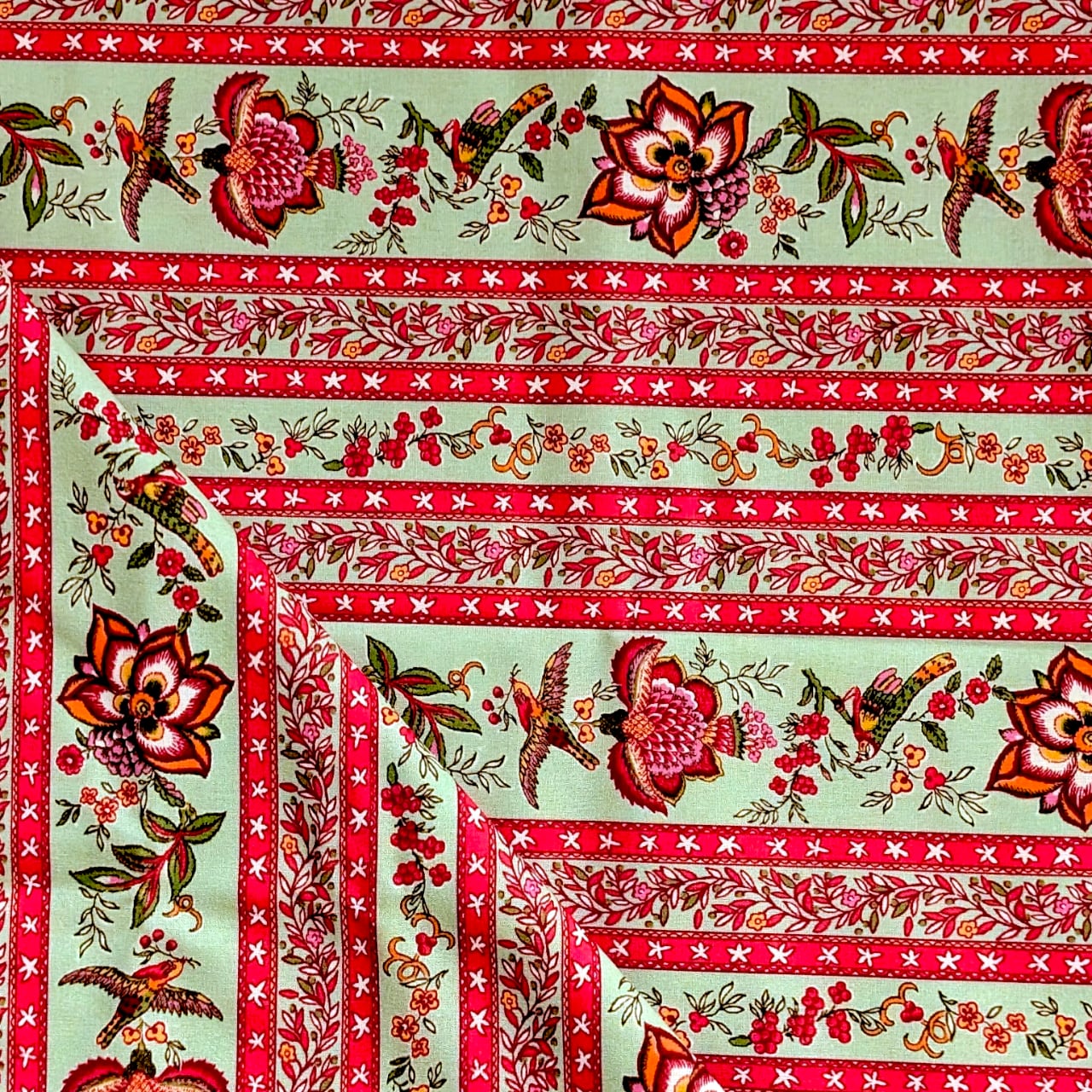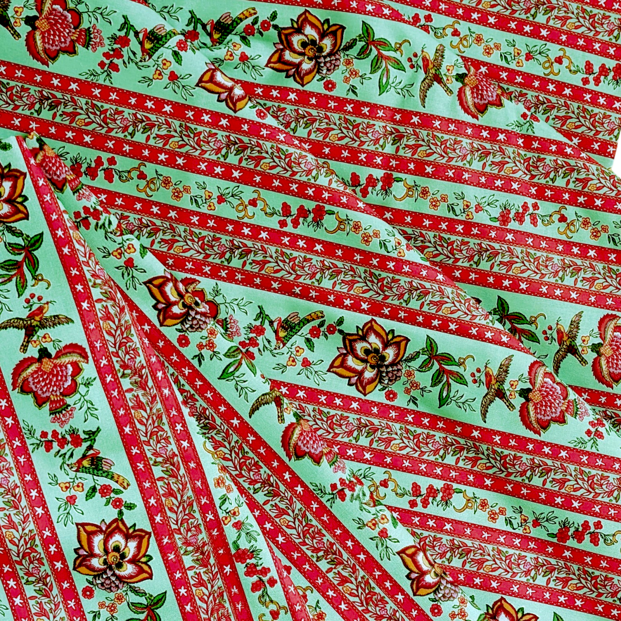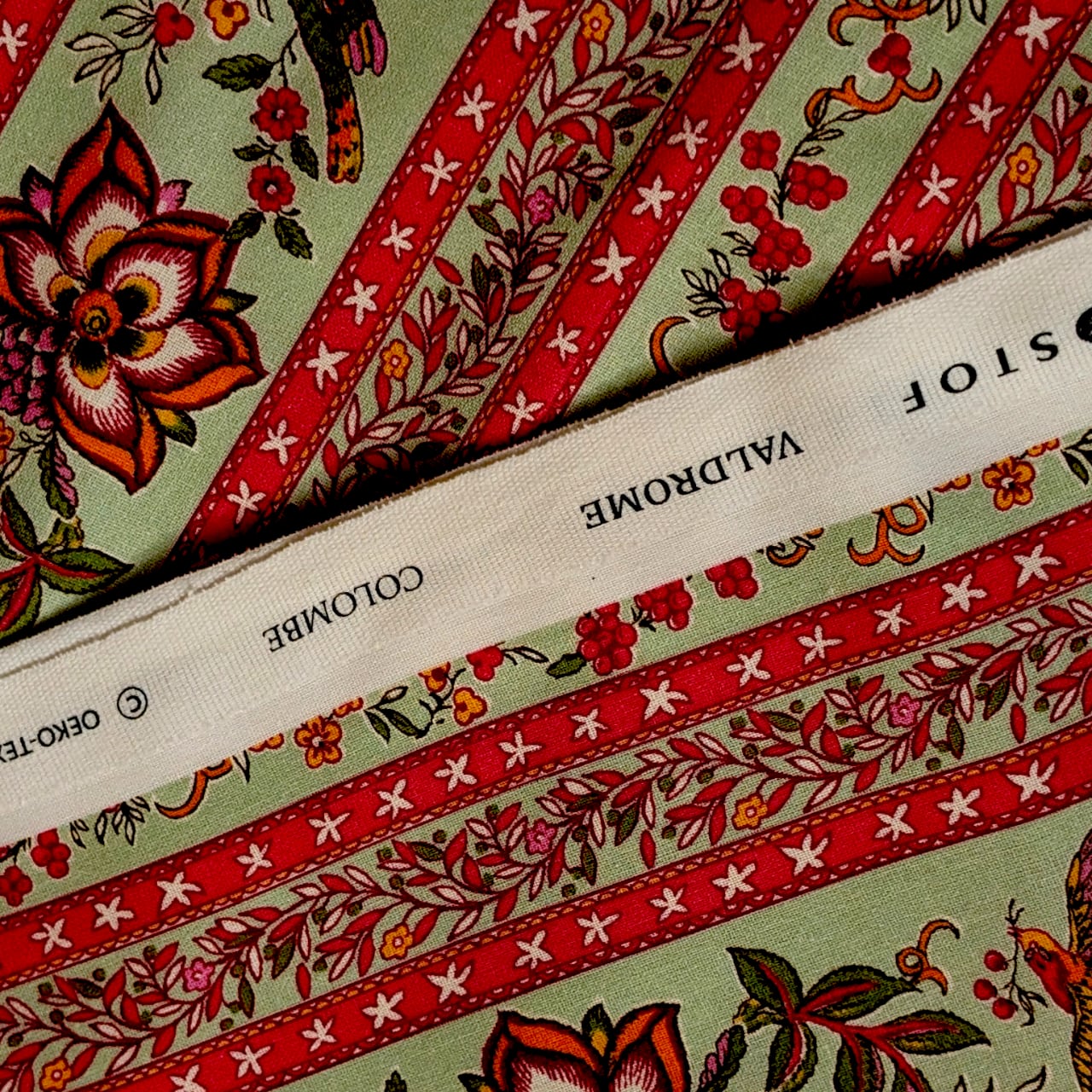 フランスValdrômeヴァルドローム(by STOFストフ社)のプロヴァンスプリント・Colombe Menthe/ ハンドメイド素材・生地(160x50㎝単位)